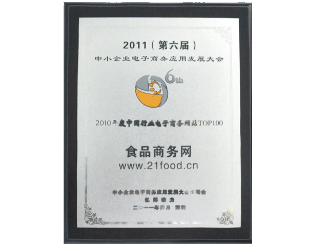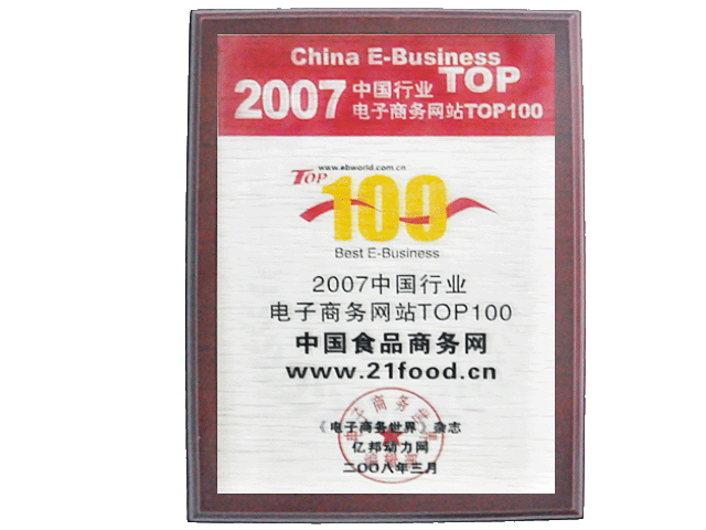 食品商務網蟬聯2005、2006、2007、2008、2009、2010、2011年度電子商務網站百強;榮獲中國行業網站百強。良好聲譽,有口皆碑。