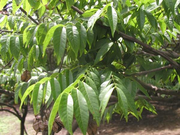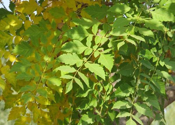 復(fù)羽葉欒樹的葉子在它的外緣有細小的鋸齒,葉子的前端稍尖,橢圓狀;